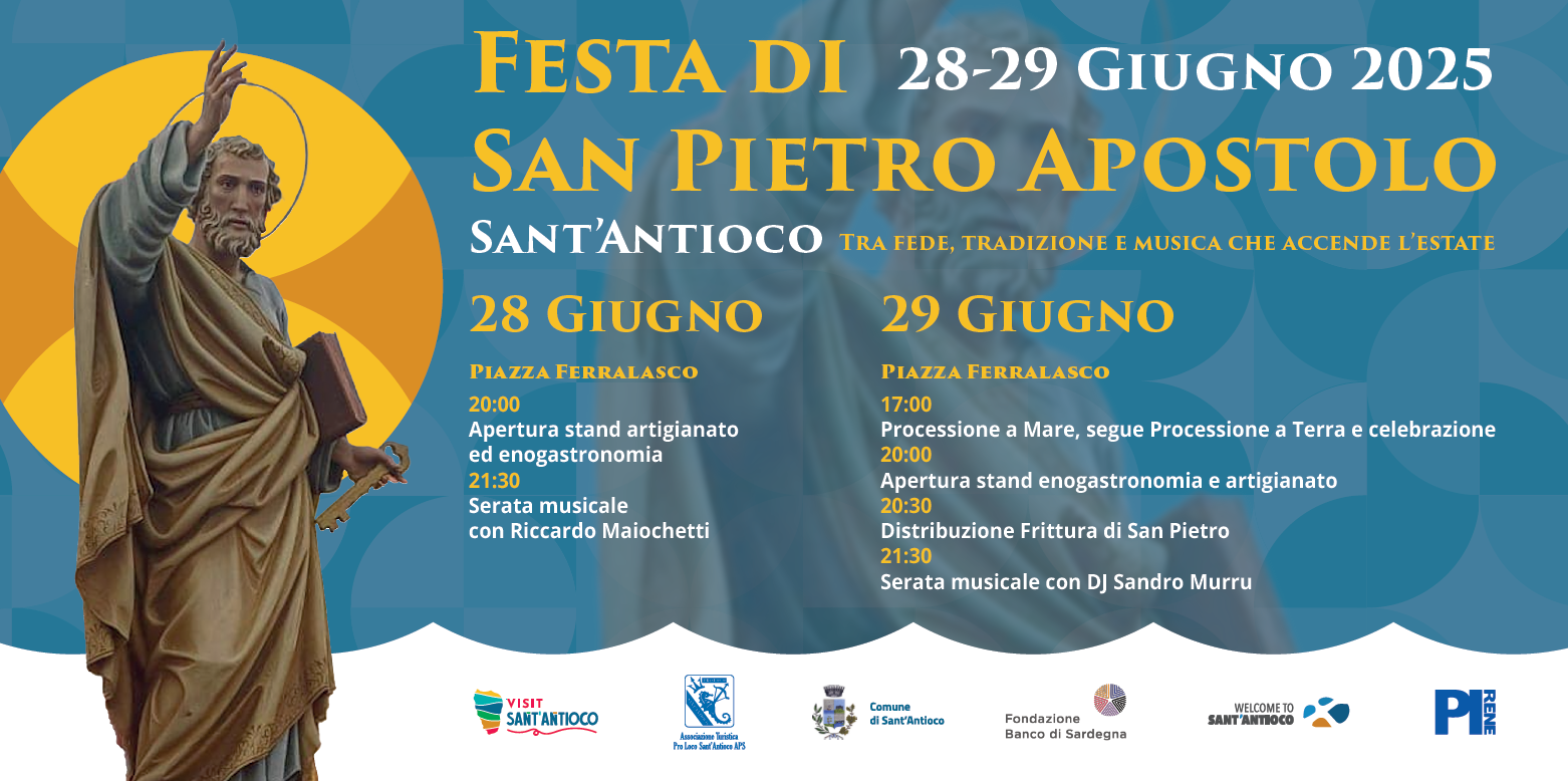 «Torna la festa di San Pietro a Sant'Antioco, patrono dei pescatori e simbolo dell’estate che inizia – commenta l'Assessora alle Attività Produttive e al Turismo Roberta Serrenti – un appuntamento atteso, tra fede, tradizione e mare, che unisce celebrazioni religiose, musica, sapori locali e la suggestiva processione a mare. Attesissimo anche il ritorno della storica frittura di pesce, simbolo della nostra tradizione legata al mare. Un ringraziamento particolare alla Fondazione Banco di Sardegna, alla Pro Loco, a Don Elio e al Comitato di San Pietro. Ancora grazie a tutti coloro che collaborano per la buona riuscita. Sant'Antioco vi aspetta!».