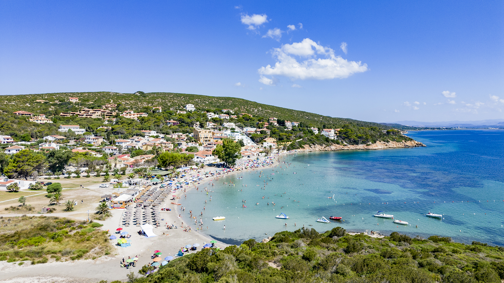 Maladroxia, che prende il nome dall’omonima frazione del Comune di Sant’Antioco, è una spiaggia pacifica e rilassante, dalla sabbia finissima nella consistenza e chiara nel colore. A conferirle un aspetto pittoresco, sono le case tipiche che si affacciano sul mattonato a un passo dal mare, senza tuttavia intaccarne l’autenticità. Questo litorale vanta una peculiarità capace di catturare l’attenzione di moltissimi bagnanti: in alcuni punti del fondale, a poca distanza dalla battigia, si trovano delle vene sorgive di calda acqua termale. Basta affondare i piedi nella sabbia per sentirne il piacevole calore.