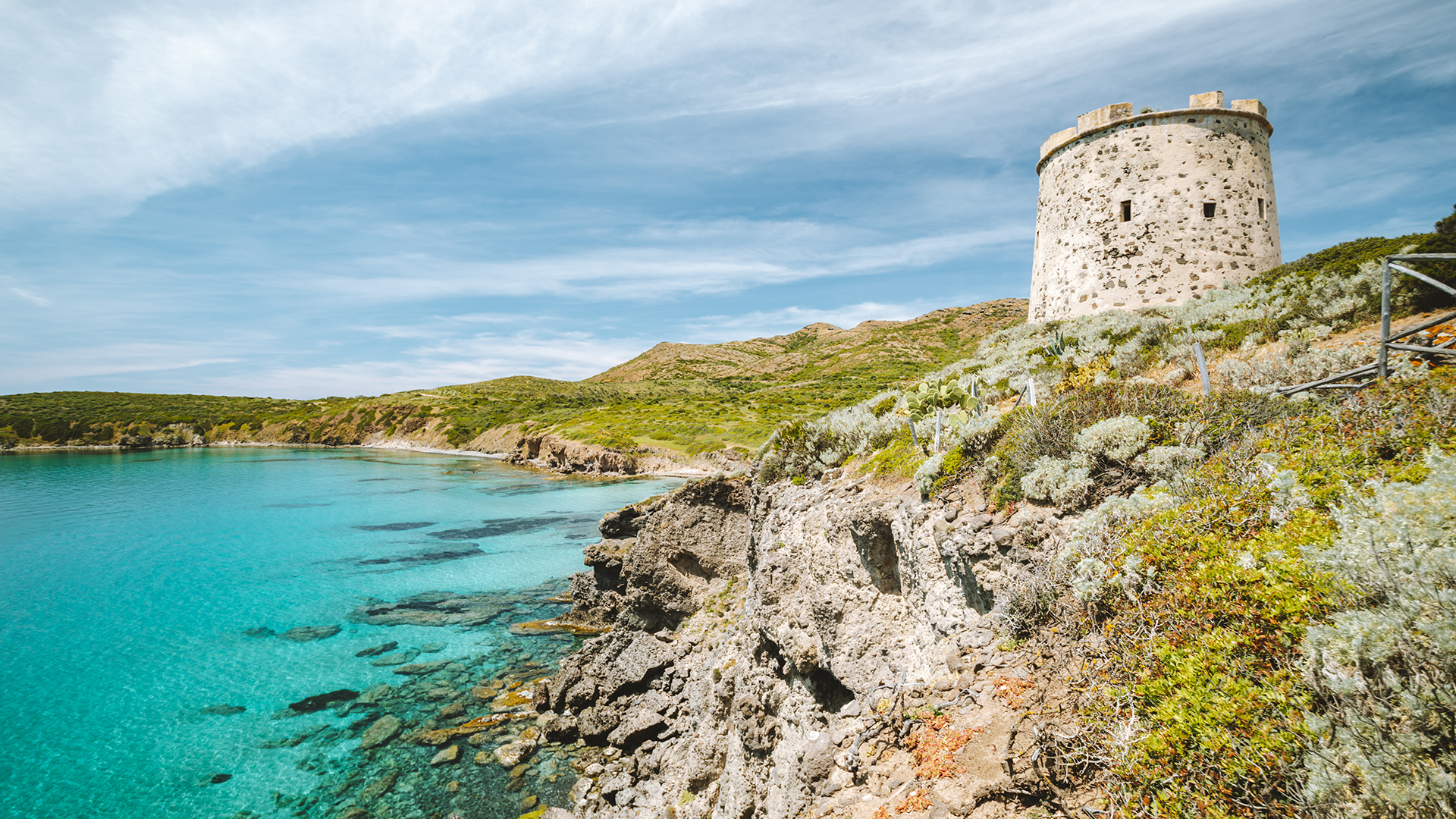 Nella zona Sud un’antica torre spagnola domina un alto promontorio che si innalza a picco su un mare dal colore verde smeraldo intenso. Potrai passeggiare lungo questo bellissimo tratto di scogliera per ammirare il paesaggio, oppure sostare, prendere il sole e praticare snorkeling nella baia di Turri, sulla quale sovrasta la torre. Questa spiaggia pittoresca è solitamente formata da ciottoli scuri ma, a seconda delle annate in cui dominano venti e mareggiate favorevoli, potrai ammirarla ricoperta di sabbia. Percorrendo un breve sentiero che costeggia la scogliera alla destra della torre, si raggiunge un’altra cala ancora più spaziosa e tranquilla, immersa nella natura selvaggia e incontaminata: un autentico paradiso per il relax. Porta con te l’occorrente per esplorare splendidi fondali, tra rocce e sabbia, e pesci che nuotano indisturbati in un mare così trasparente da sembrare irreale.